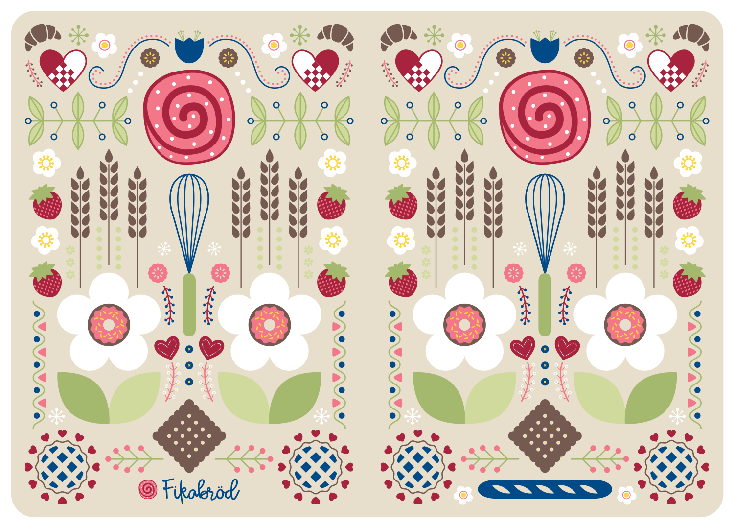 On occasion Fikabröd will include completely custom products in their baking subscription boxes, and these goodies always coordinate with the monthly theme. Once settled on an item, I design and source the product. The illustrations and designs are inspired—strongly or loosely—by Swedish folk art and are always undeniably Fikabröd.