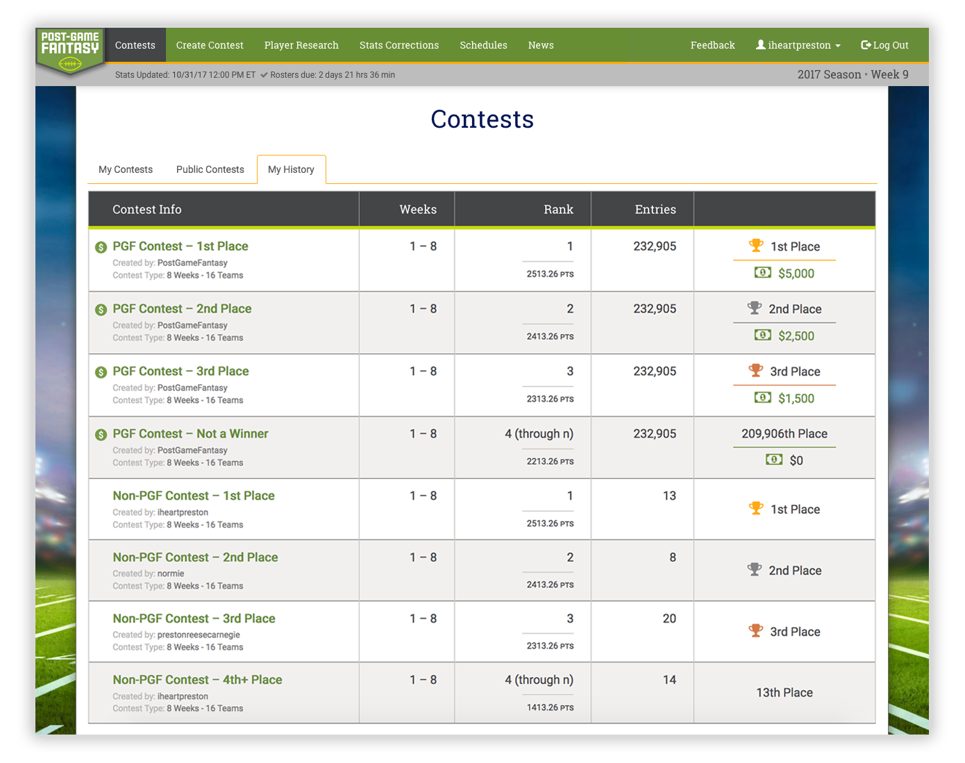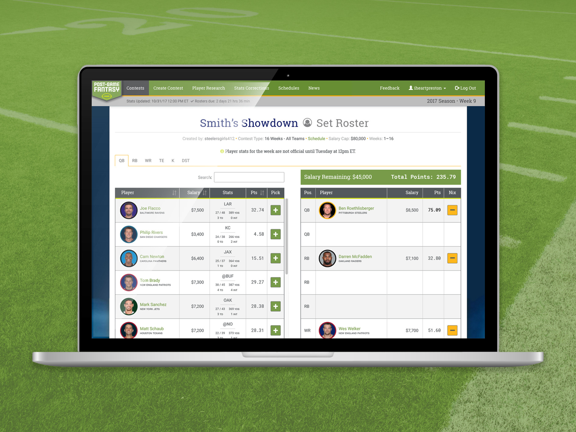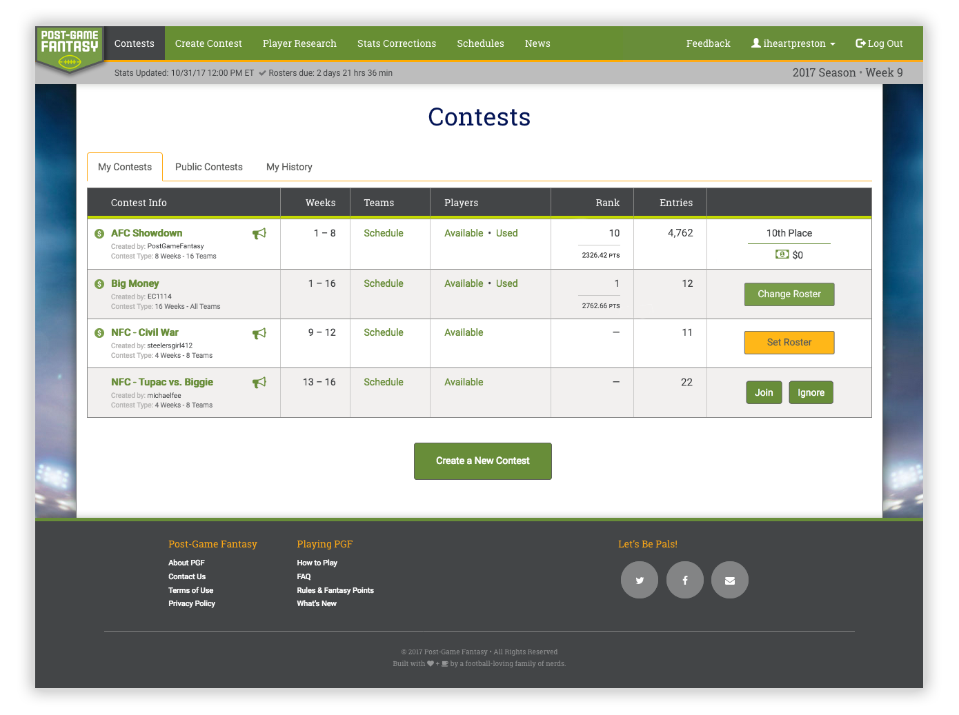 Post-Game Fantasy is a wholly new type of fantasy football in which you select your weekly line-up after the games are played each week. The catch? You can only select each player once throughout the entire season. After fleshing out the user experience and gameplay functionality with PGF’s founders, I designed the front-end of the site and coded custom CSS while collaborating with a web and database developer.