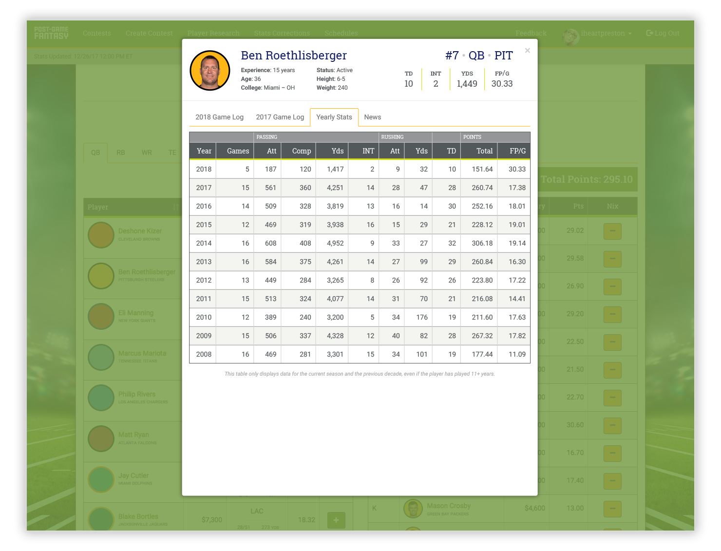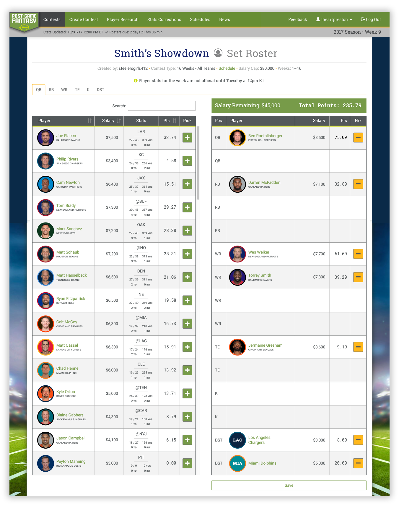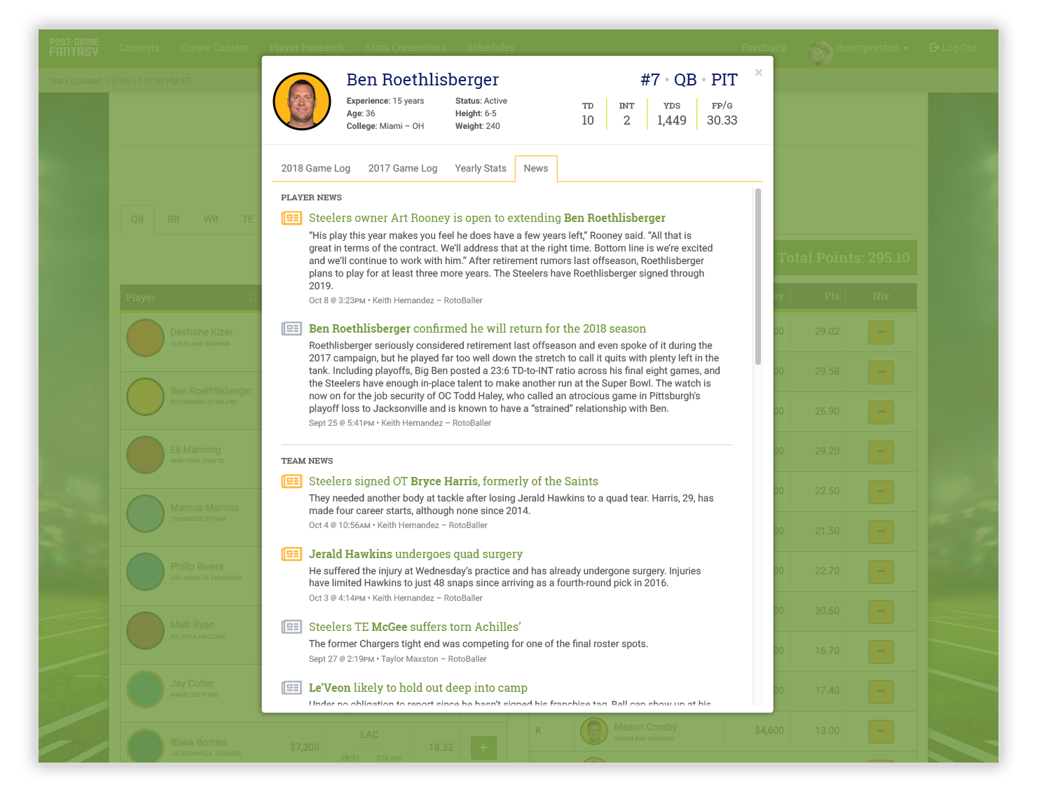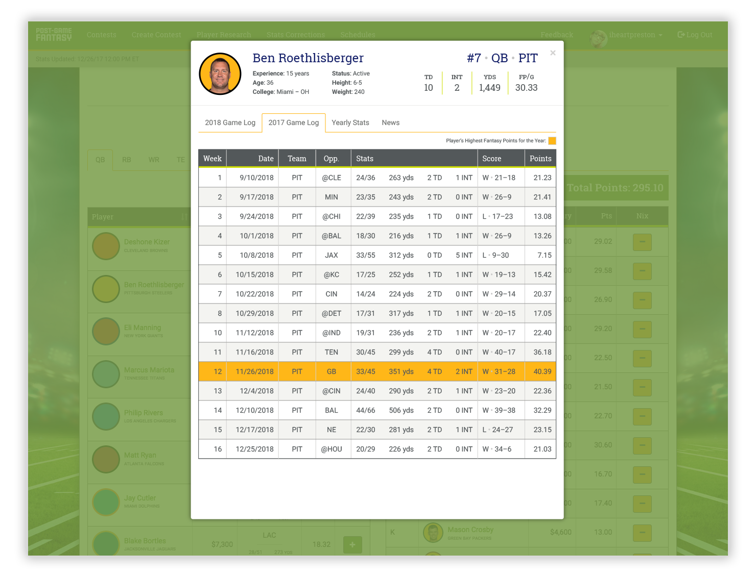 Post-Game Fantasy is a wholly new type of fantasy football in which you select your weekly line-up after the games are played each week. The catch? You can only select each player once throughout the entire season. After fleshing out the user experience and gameplay functionality with PGF’s founders, I designed the front-end of the site and coded custom CSS while collaborating with a web and database developer.