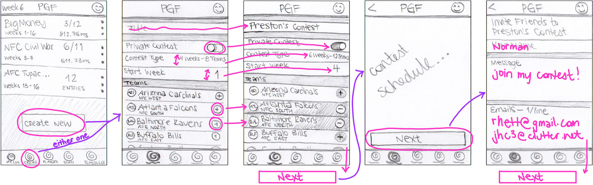 Beginning Sketches for the PGF Mobile App