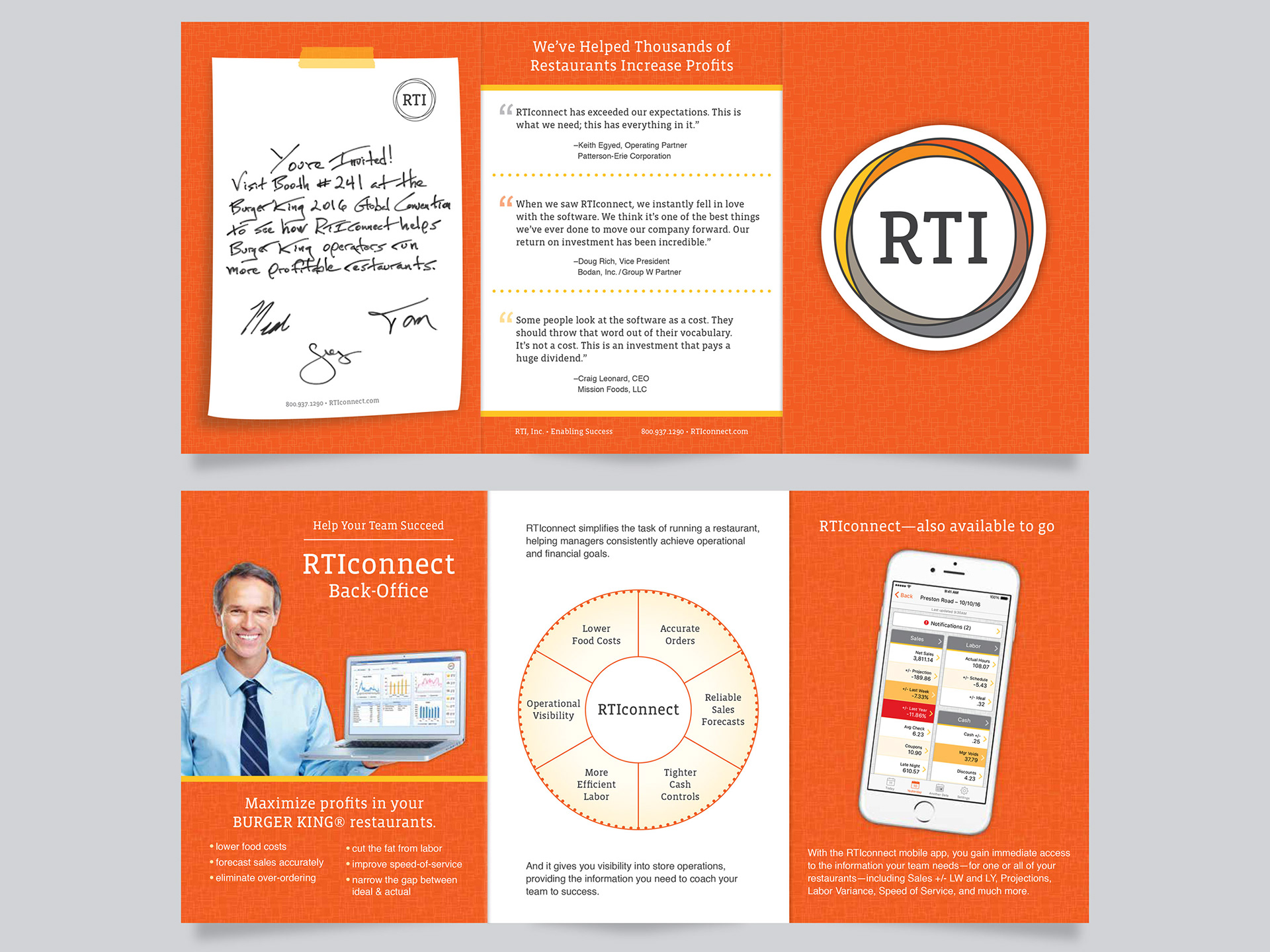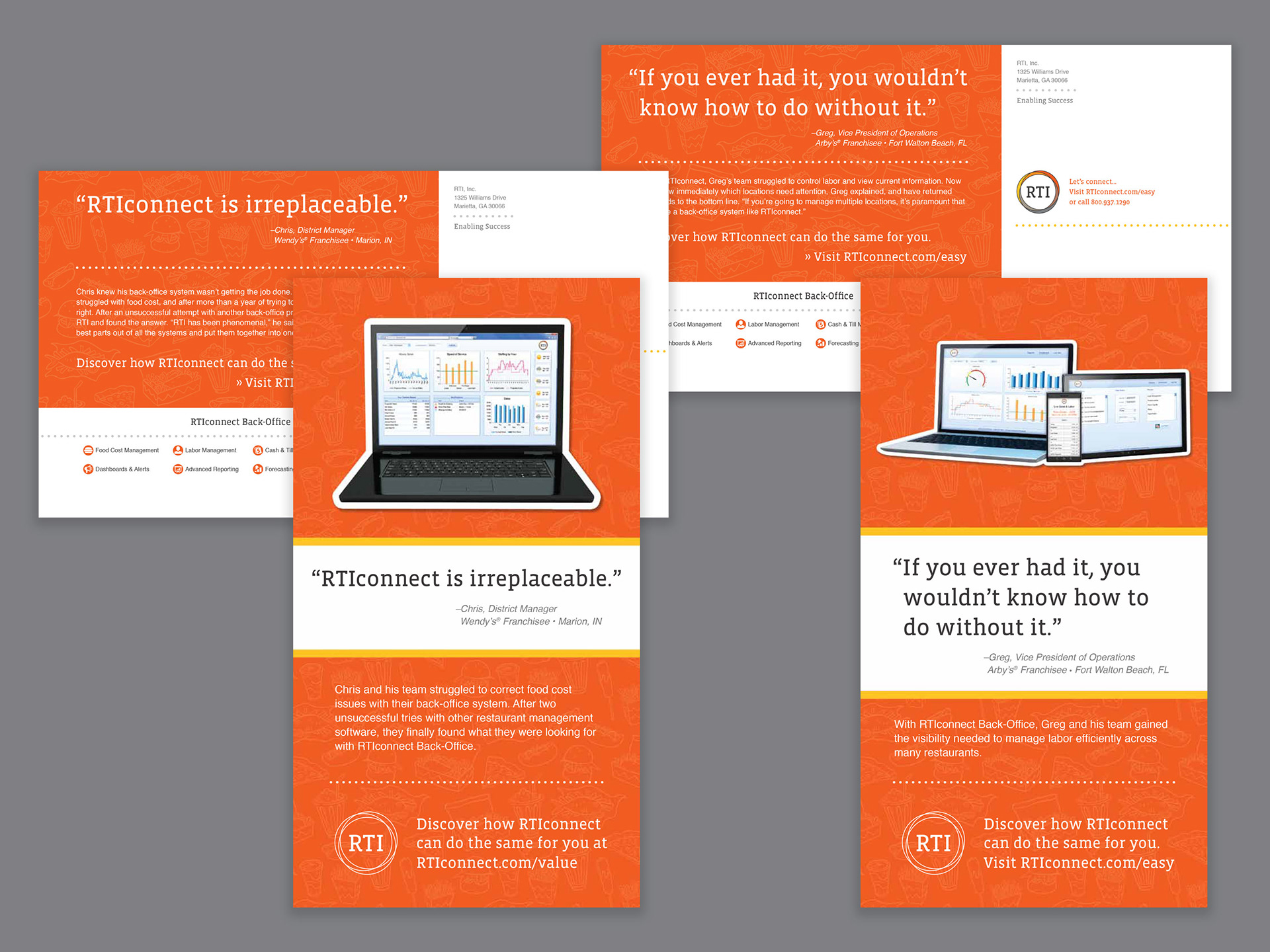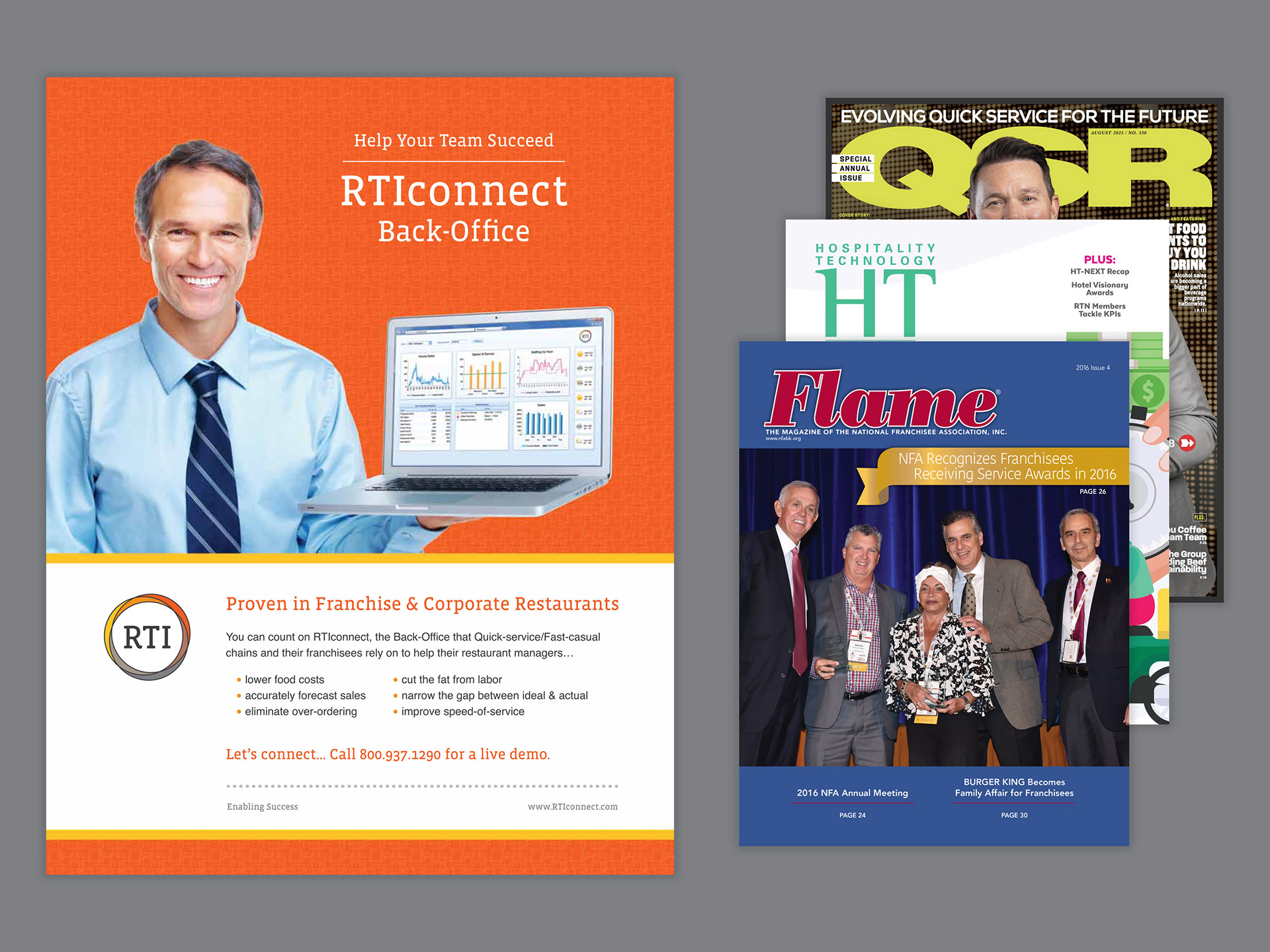 Since RTI develops software for fast casual and quick service restaurants, they market to franchisees and franchisors of brands such as Wendy’s and McDonald’s. We ran a variety of marketing campaigns from direct mail to magazine advertising to trade show takeaways.