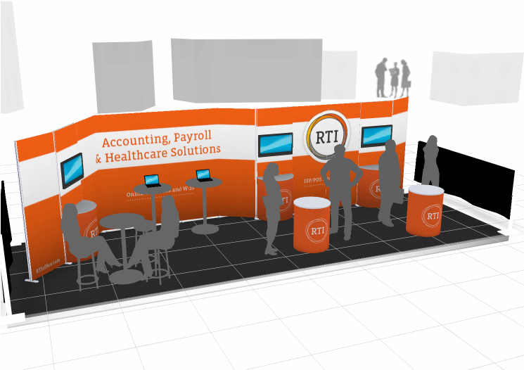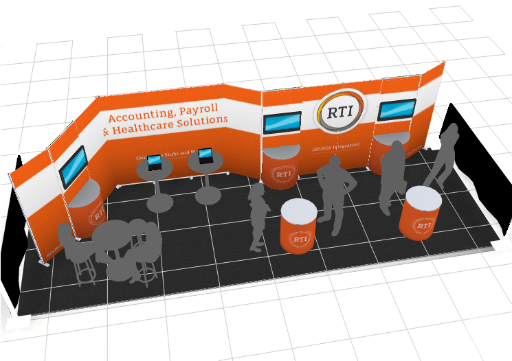 After rebranding, RTI wanted an entirely new booth set-up for trade shows. We went with a backdrop framework that was easily customizable in terms of booth design, size, curves, and add-ons.